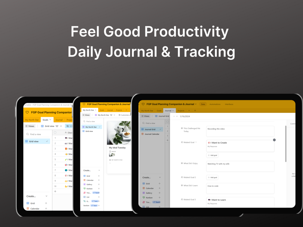 Feel Good Productivity Goal Planning Companion and Journal for Airtable