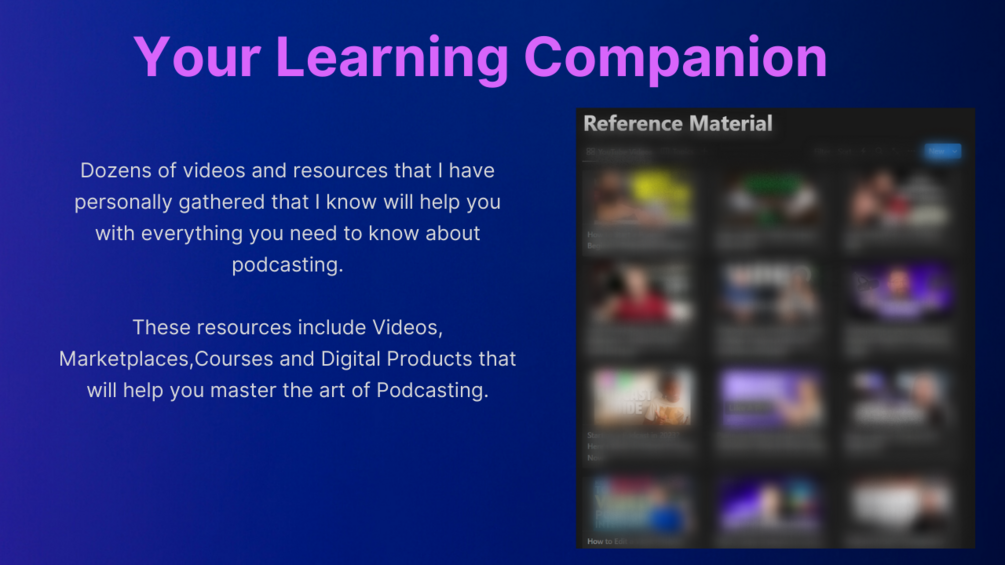 Dozens of videos and resources that I have personally gathered that I know will help you with everything you need to know about podcasting.