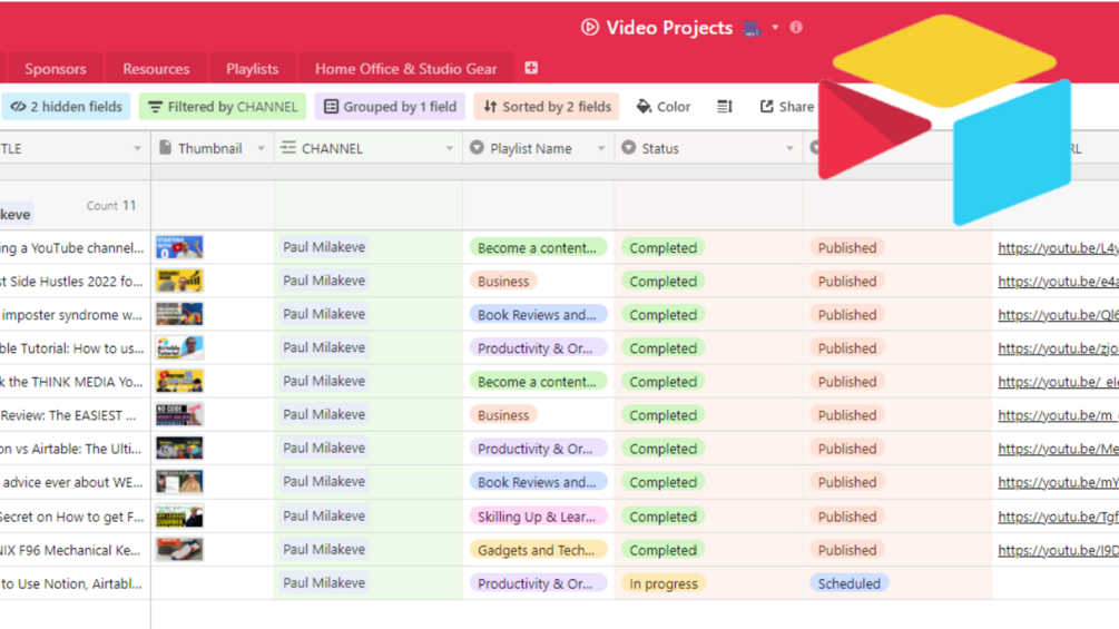 This template has helped me be more organized and productive while managing multiple YouTube channels. This worflow has been proven to work with my workflow but feel free to customize it in a way that works best for your workflow. Enjoy!